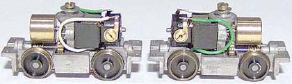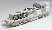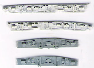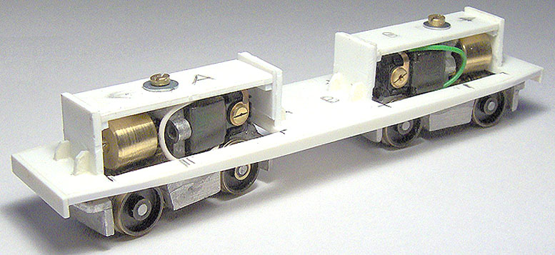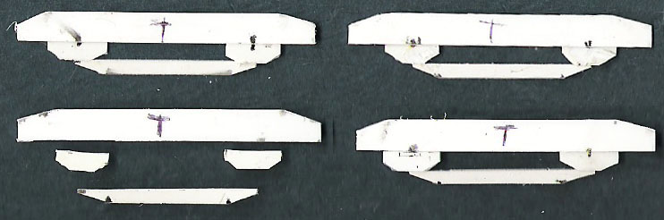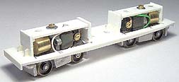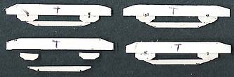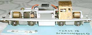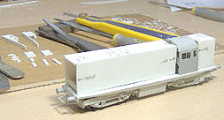 8. The bogie sideframes are constructed from Plastikard sections. Detail will be provided by old BTTB plastic diesel bogie sideframes; the components individually cut off, shaped and then filed down; 8 axlebox covers, 4 sand boxes, 8 large coil springs, 8 medium coil springs, 8 dampers and 4 brake resevoirs.