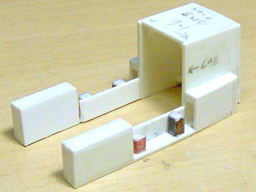No 2. end superstructure and cab mounting constructed from 1mm sheet plastikard.